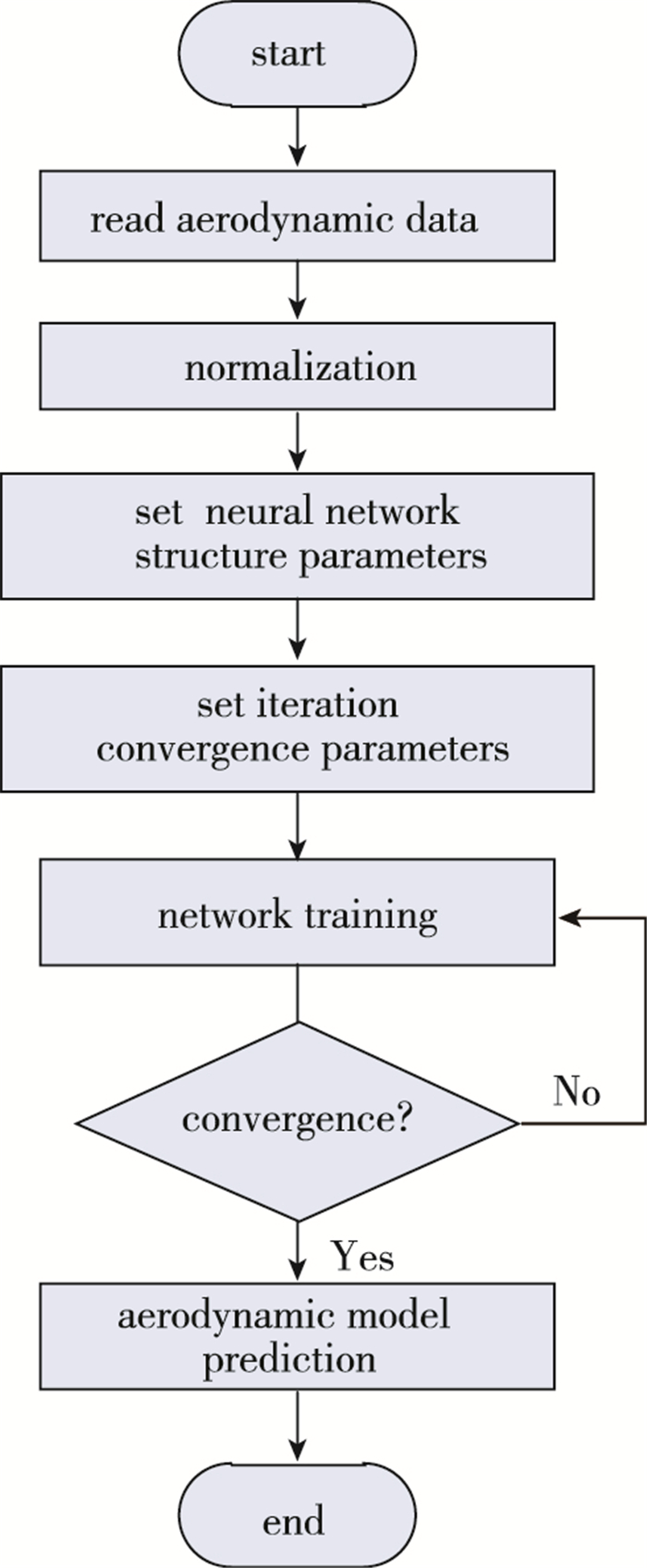 图 1 神经网络气动建模算法流程 Fig.1 Flowchart of the neural network aerodynamic modeling algorithm |