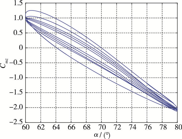 $ {C_{{\rm{m}}z}} = {C_{{\rm{m}}z0}} + C_{{\rm{m}}z}^\alpha \alpha + C_{{\rm{m}}z}^{{\omega _z}}{\omega _z} $ |