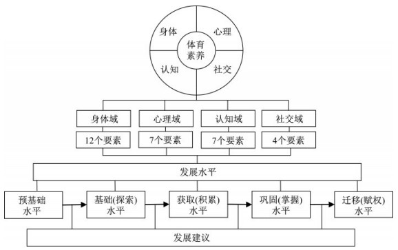 身体域亦称身体能力,是指个体通过运动参与所获得且能运用的运动技能、身体控制和整体健康。当个体具备较好的身体能力时,能在陆地、水上和冰雪等不同运动环境中协调运用各种运动技能,且具备以下4种能力达成目标:①能执行控制、姿势调整和平衡等运动技能(包括基本运动技能),以成功适应不同的运动环境;②能灵活运用不同情境或环境所需的运动策略;③能在不同运动和身体活动中操纵和控制不同的运动器械;④维持健康水平以成功参加不同类型的身体活动。此外,身体域总共涵盖了12个能力要素,分别为运动技能、运动器材使用、器械操控、心血管耐力、肌肉耐力、协调、平衡、柔韧、灵敏、力量、反应时和速度。