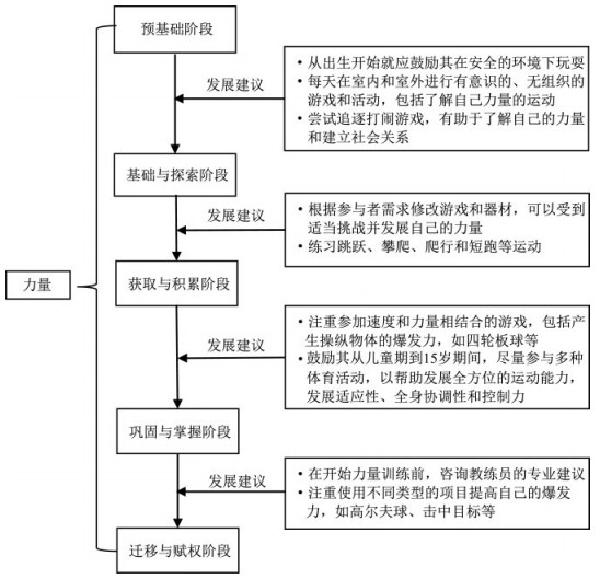 | 图 3 身体域中力量指标的水平阶段发展建议 Figure 3 Schematic diagram of horizontal stage development of indicators of strength in the body domain |
