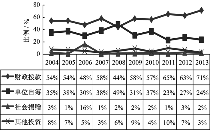 图 1 2004—2013年全国体育场地投资比例构成 Figure 1 China's sports venues investment structure in 2004—2013 |
