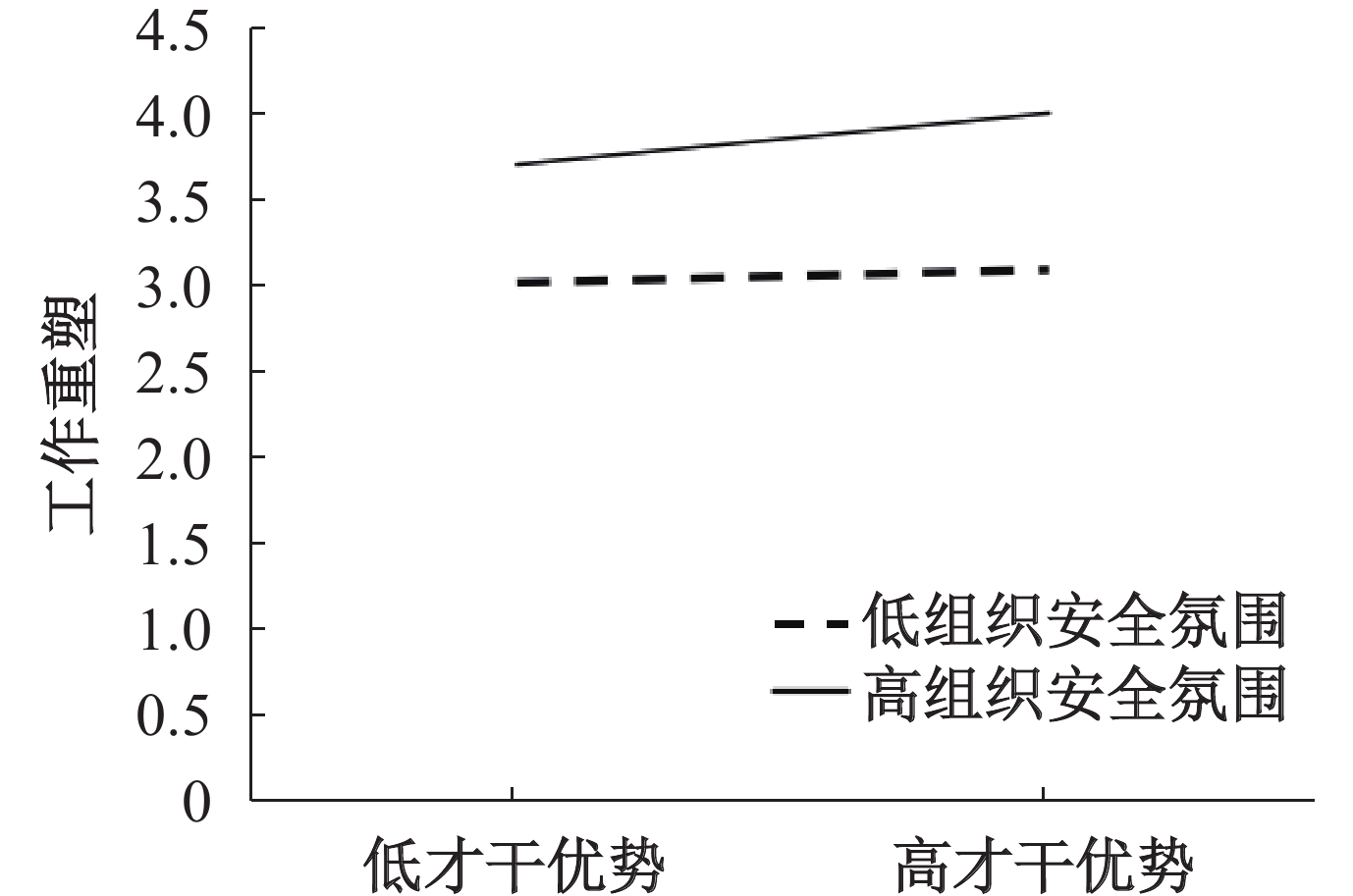 | 图 2 组织安全氛围对才干优势与工作重塑之间关系的调节作用 |