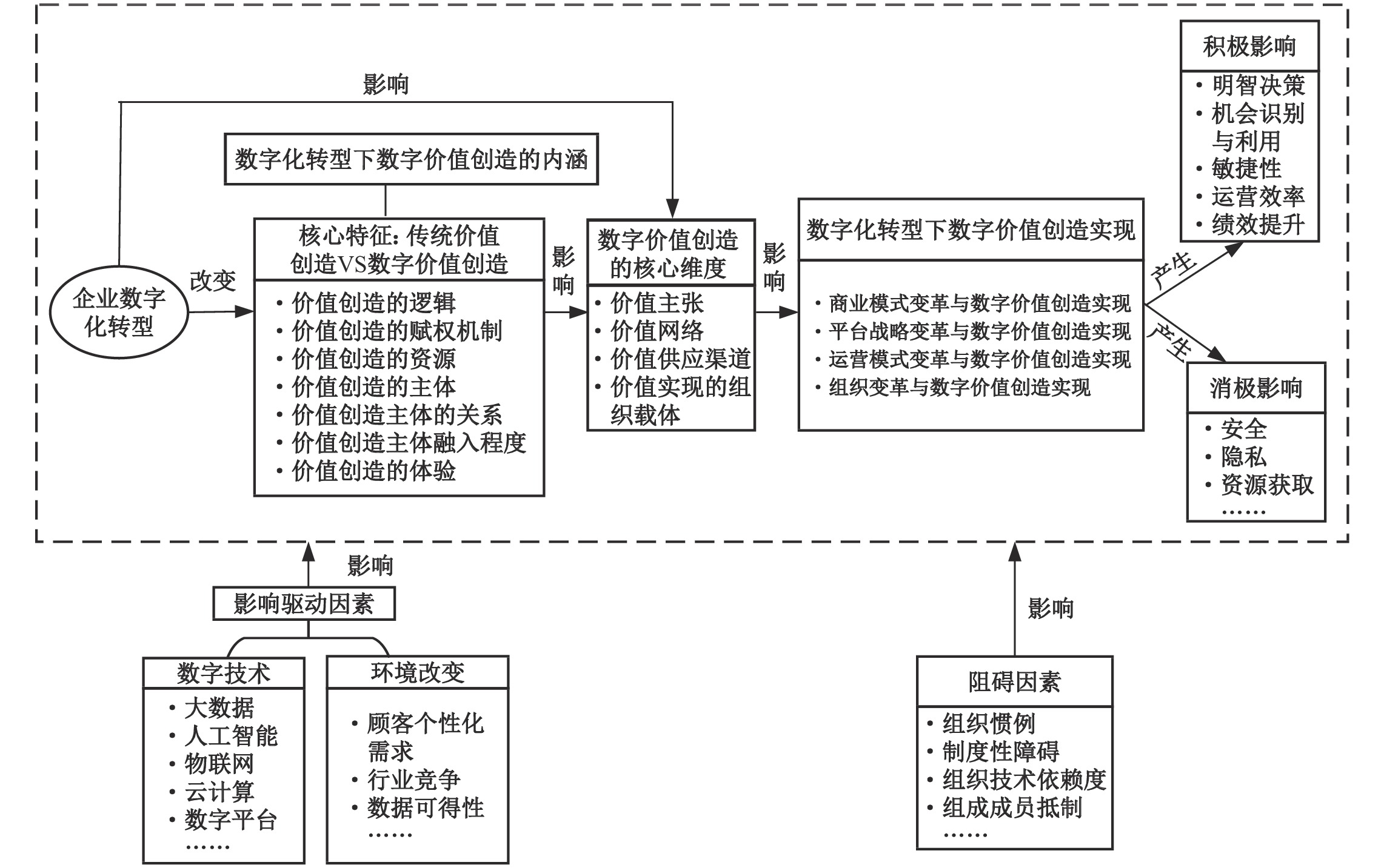 | 图 1 数字化转型情境下数字价值创造的研究框架 |