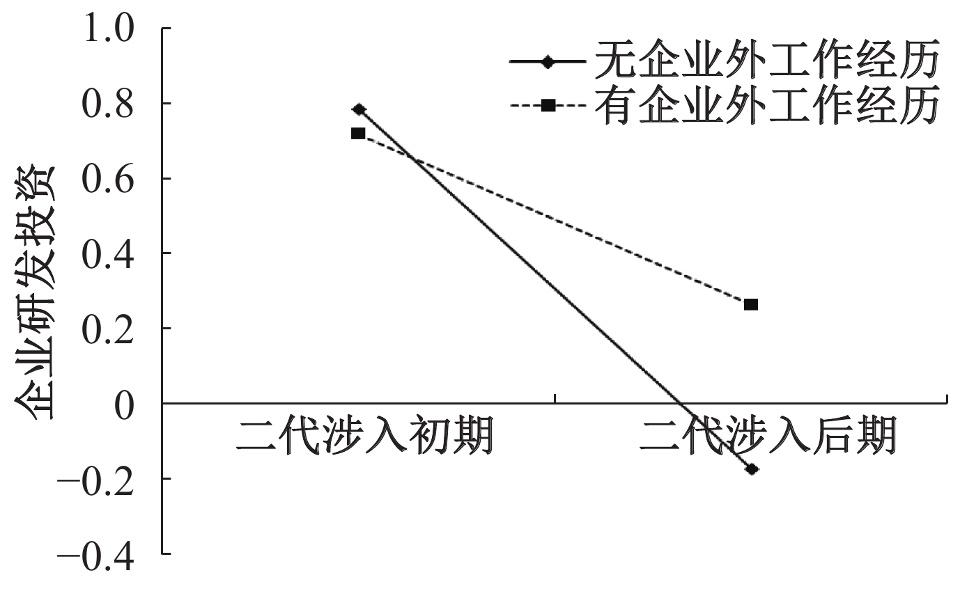 H2:二代企业外工作经历削弱了二代涉入时长与企业创新投入间的负向关系,即有企业外工作经历的二代更可能从事创新投资。