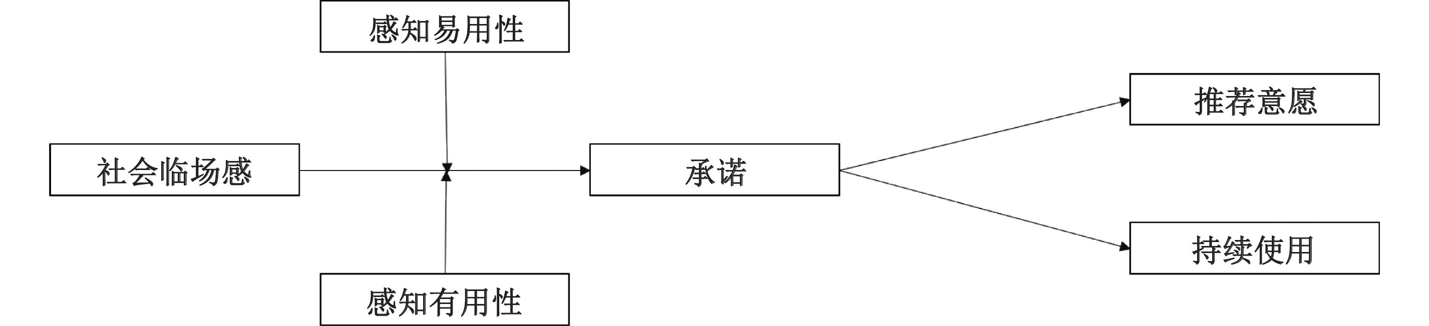 如前所述,社会临场感会引发较高的承诺水平。同时,根据已有研究表明承诺有利于企业营收增加以及消费者未来购买和推荐意愿(Huntley,2006)。具体来说,承诺会增加关系双方的关系稳定性和满意度,弱化关系双方的离开倾向(Mathieu和Zajac,1990),进而增加了用户的未来持续使用和推荐意愿(Li和Wang,2017)。因此,如果网络直播用户与该平台关系密切,承诺水平高,则用户更倾向于向其他人推荐该平台以及该平台的直播节目。此外,根据已有研究表明社会临场感可以作用于用户的满意度和归属感进而促进用户的持续使用行为(Lin等,2014;Cheikh-Ammar和Barki,2016)。而且,以社交网络中共存社区(co-presence community)为关注对象的研究发现在虚拟网络中共在感所导致的社会临场感会提高推荐意愿(Tokarchuk等,2009)。根据以上分析,承诺与社会临场感对持续使用和推荐意愿之间的关系具有重要的作用,本文提出如下假设。
