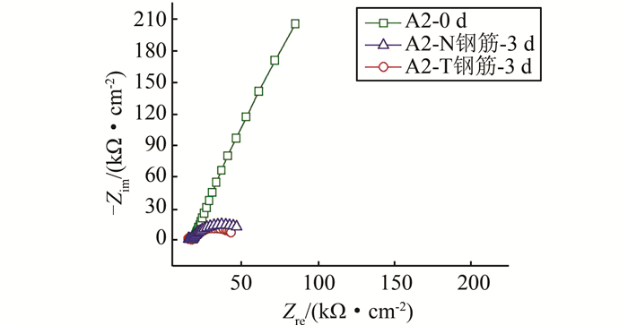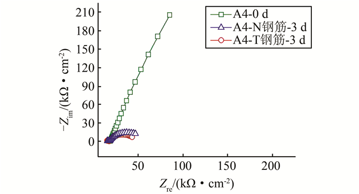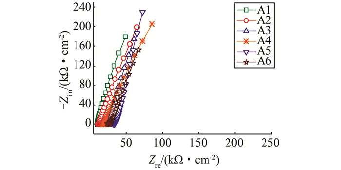 | 图 4 锈蚀后A系列小梁钢筋Nyquist图 Figure 4 Nyquist graph of A series steel bars after corrosion |