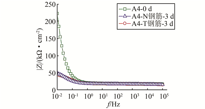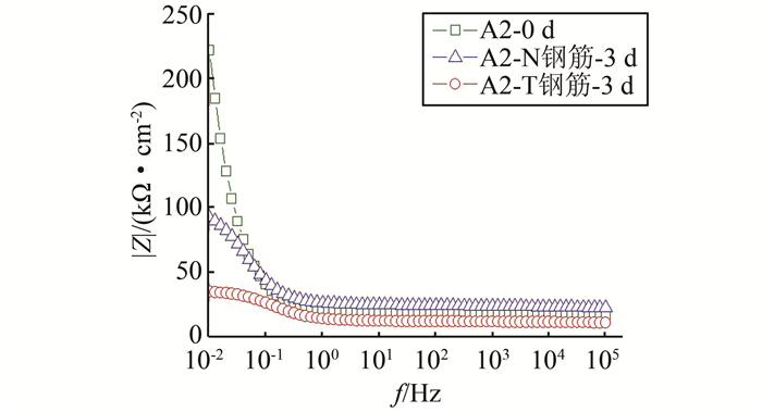 | 图 5 锈蚀后A系列小梁钢筋bode图 Figure 5 Bode graph of A series steel bars after corrosion |