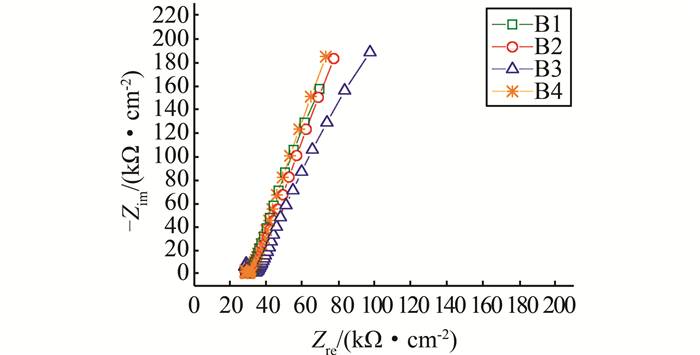 | 图 6 锈蚀前B系列小梁钢筋Nyquist图 Figure 6 Nyquist graph of B series steel bars before corrosion |