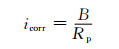 2 试验结果与分析 2.1 开路电位与极化电阻当外部电流密度为0时,对于不可逆电极其开路电位就是其自腐蚀电位[2].通电锈蚀28 d之后小梁的Ecorr(腐蚀电位)经测试都明显低于-275 mV,表明小梁都处于锈蚀状态.由于Ecorr的测试受众多因素影响,故只能作为定性描述的指标,而腐蚀电流密度icorr可以定量表征钢筋的腐蚀程度,由下式求得[9]: