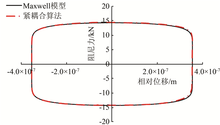 稳态响应后10号阻尼器计算得到的滞回曲线见图 3,计算得到的滞回曲线与Maxwell模型描述的滞回曲线一致.