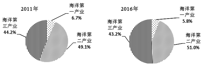 图 3 2011年和2016年山东省海洋三次产业占比 |