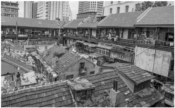 再比如里院的保护与再生开发也应该成为城市村落文化抢救的一项重要工作。前面我们说过,里院是山东半岛非常独特的一种传统民居,是从村落发展而来的,具有很高的文化遗产价值。青岛广兴里(见图 4)是当地最具代表性的里院之一,坐落在海泊路上,也叫积庆里,是旧青岛著名的三大市场之一,与劈柴院、台东齐名。广兴里建于1897年,是当时德国人建造的华人居住区,规模较大,最多时达到160户居民,人气兴旺,现仅剩下居民36户,都是低收入的困难户,由于年久失修,房屋破损严重,政府已经把它列为文物保护单位,按照文物保护要求进行维护,还计划开发为建筑博物馆,这应该说是为里院的保护与再生开发开了一个好头。这样的做法是值得肯定的,也是值得推广的,因为里院的价值不仅仅在于见证了青岛作为殖民城市的历史,更重要的还在于可以看出一个城市如何从传统村落演变为城市群落,这对于城市史研究而言意义不言而喻。对这样的传统民居的保护性开发,同城市村落型特色小镇建设结合起来,可以为城市增添许多地域文化色彩,比起那种千篇一律的城市化建设更有吸引力,也更富于城市文化内涵。