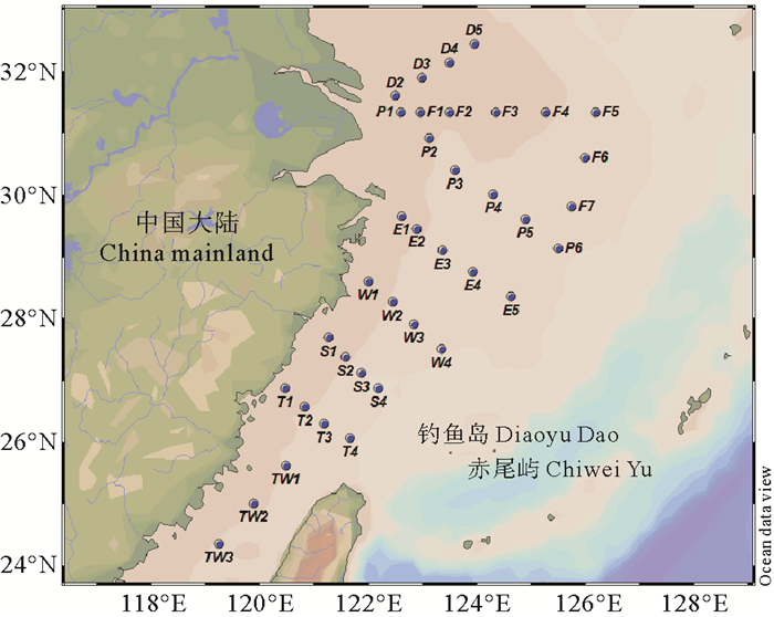 图 1 2018年夏季东海航次采样站位 Fig. 1 Sampling stations in the East China Sea in summer 2018 |