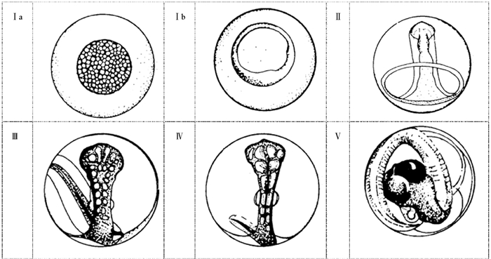 图 2 鱼类Ⅰa期至Ⅴ期胚胎发育示意图[15] Fig. 2 Schematic diagram of fish embryonic development from stages Ⅰa to Ⅴ[15] |