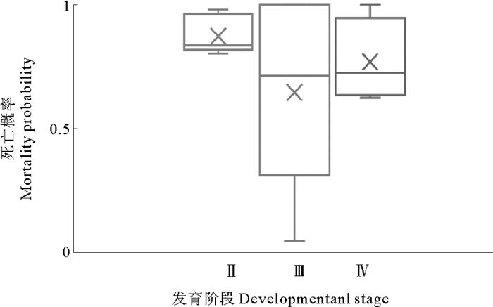 图 4 小黄鱼卵子各发育阶段的死亡概率 Fig. 4 Interstage mortality probability of small yellow croaker eggs at various developmental stages |