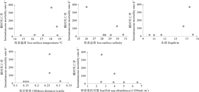 图 7 小黄鱼Ⅱ期卵子瞬时死亡率及栖息地环境 Fig. 7 Instantaneous mortality rate and habitat environmental characteristics of stageⅡeggs of small yellow croaker |