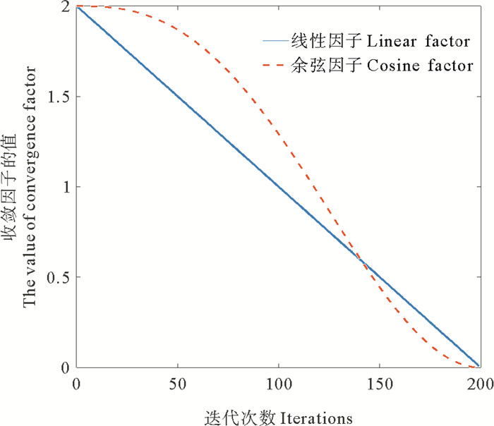 图 1 余弦收敛因子曲线图 Fig. 1 Cosine convergence factor curve |
