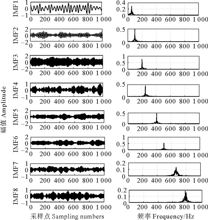 图 6 IMF分量及其对应频谱 Fig. 6 IMF component and its corresponding spectrum |