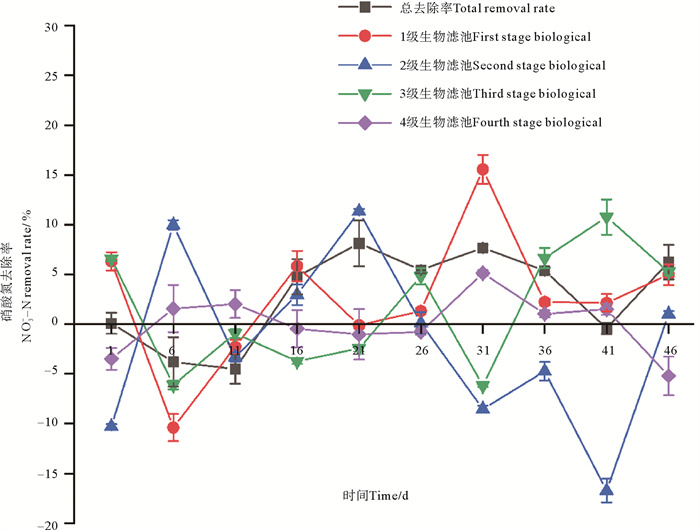 图 3 实验期间各级生物滤池NO3--N去除率变化 Fig. 3 NO3--N removal rates of various biofilters during the experiment |