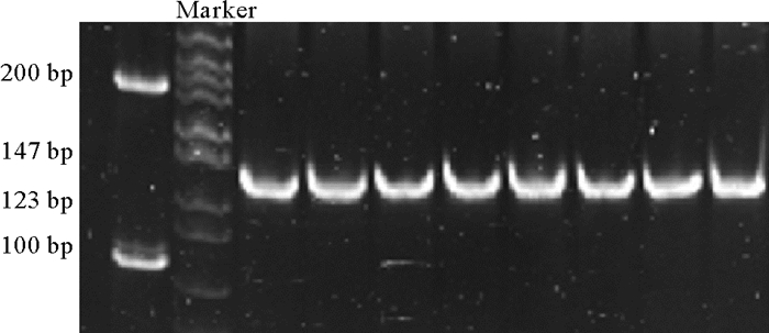 图 2 探针扩增检测电泳图 Fig. 2 Polyacrylamide gel electrophoresis results of PCR product of oligo pools |