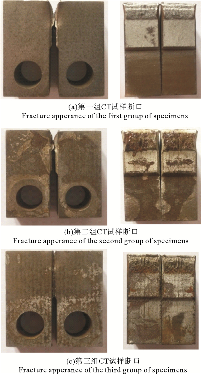 图 12 三组CT试样断口 Fig. 12 Three groups of CT specimen fractures |