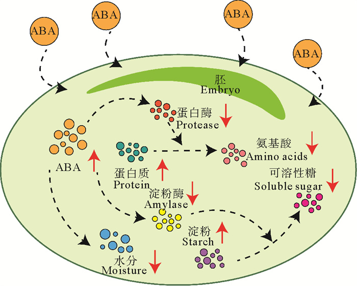 图 13 ABA处理下鳗草种子内部生理响应示意图 Fig. 13 Schematic diagram of internal physiological response of eelgrass seeds to ABA treatment |