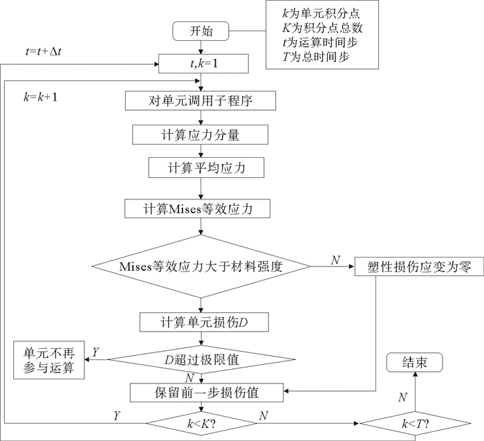 (4) 根据数据循环不断更新并累积塑性损伤,当损伤达到一定程度时,认为此单元材料已经遭到破坏,于模型中将该单元删除。