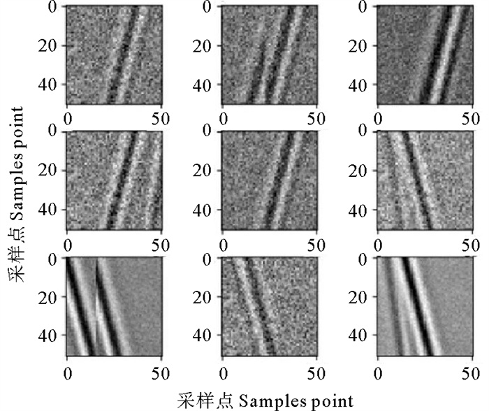 以模拟数据为例,模拟地震剖面的地震道数在100~500不等,基于数据增广的思想加入了均值为0、方差为0.1~0.5的高斯随机噪音,并人工添加静校正量模拟复杂地形资料,制作包含13 525个样本的样本集,9 467个样本作为训练集,4 058个样本作为测试集。部分初至样本见图 3。