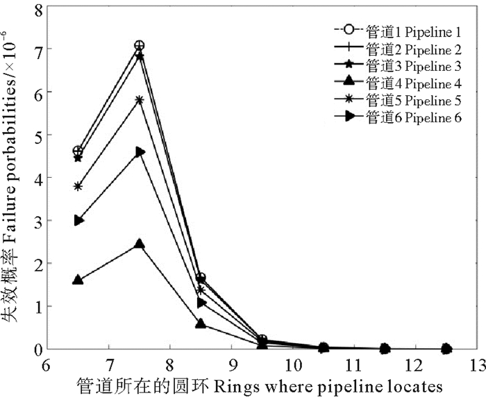 图 3 管道失效概率随不同管道的变化 Fig. 3 Failure probabilities with different pipelines |