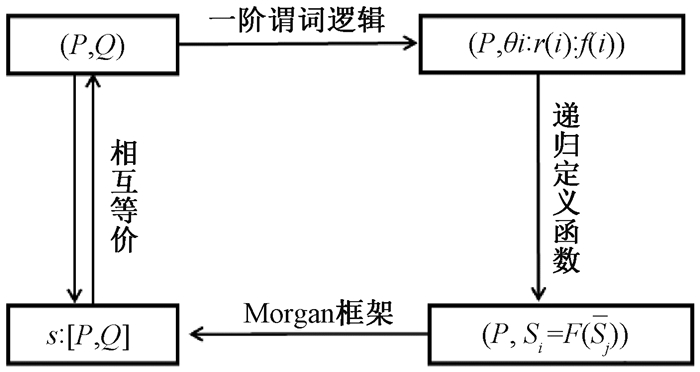利用递归定义函数技术对初始规约中的后置条件(θi: r(i): f(i))进行变换,生成与初始规约(P, Q)等价的s: [P, Q]框架,其中s为满足规约P到规约Q求精过程中的框架变量。初始规约变换过程如图 2所示。