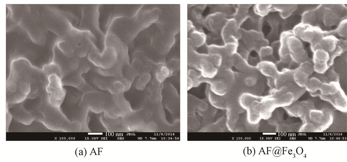 图 3 AF和AF@Fe3O4的扫描电镜图 Fig. 3 SEM image of AF and AF@Fe3O4 |