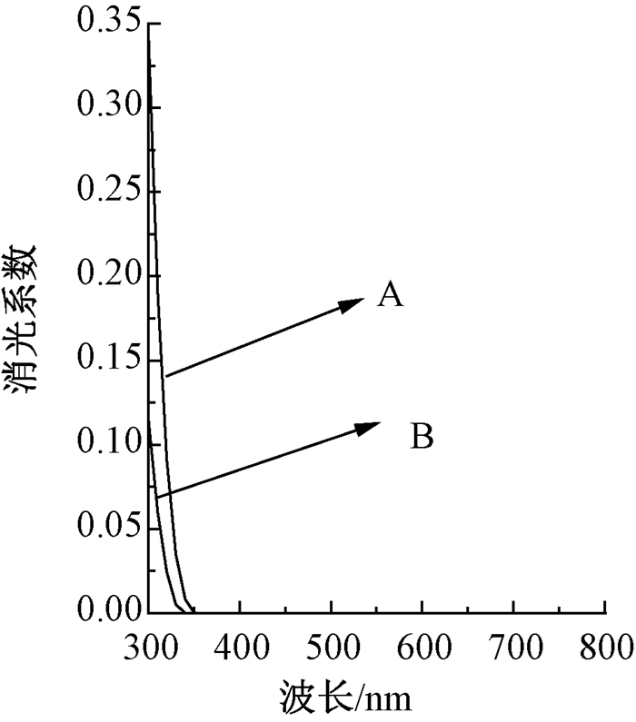 图 6 TiO2薄膜的消光系数曲线 Figure 6 Extinction coefficients of sample A and B |