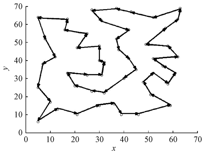 2.2 TSP问题的求解为验证本文算法的有效性,将该算法应用于典型的TSP问题.选用TSPLIB测试库中的经典案例eil51进行了测试.
