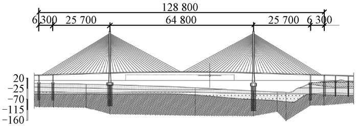图 1 南京长江三桥总体布置图(单位:cm) Fig. 1 General layout of Nanjing No.3 Yangtze river bridge (unit: cm) |