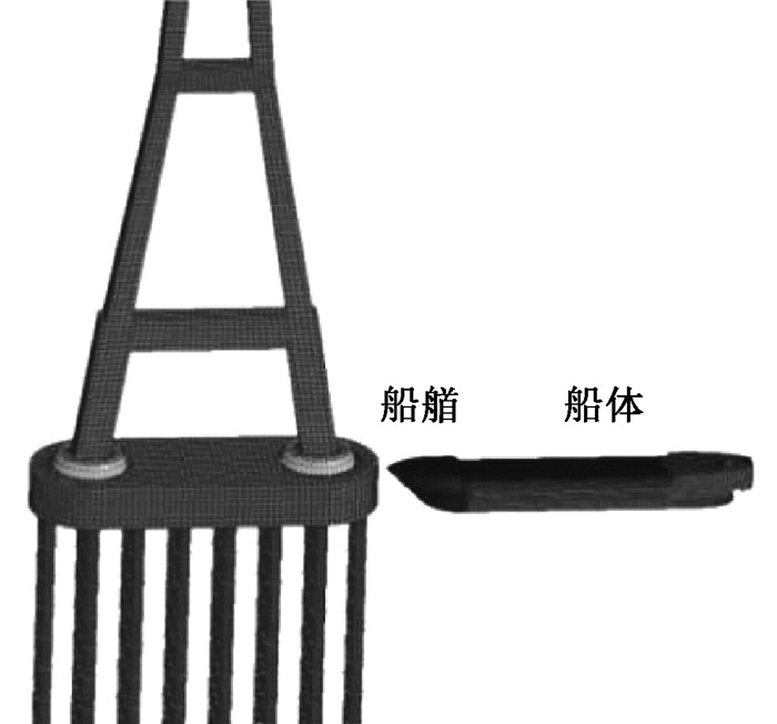 图 6 船桥碰撞有限元模型 Fig. 6 Finite element model of ship bridge collision |