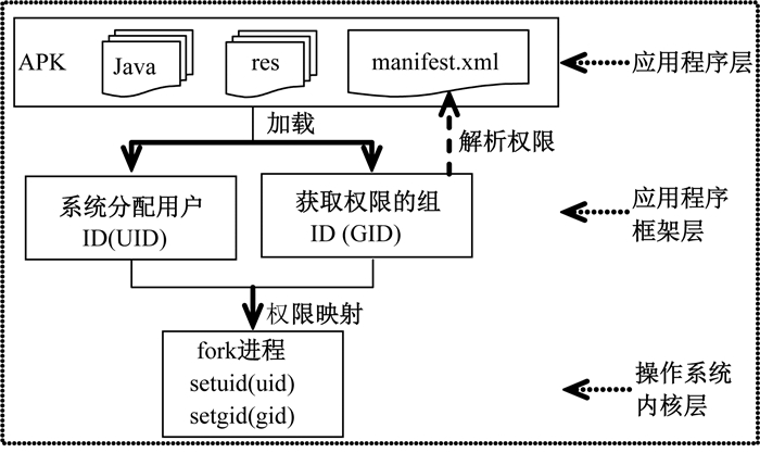图 1 Android权限机制 Fig. 1 Permission mechanism of Android |