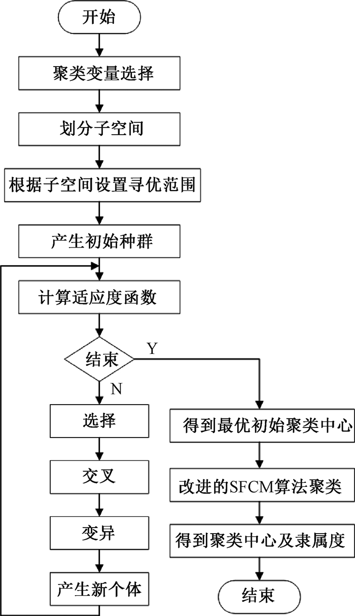 图 1 GA-SFCM聚类算法流程 Fig. 1 GA-SFCM clustering algorithm flow |