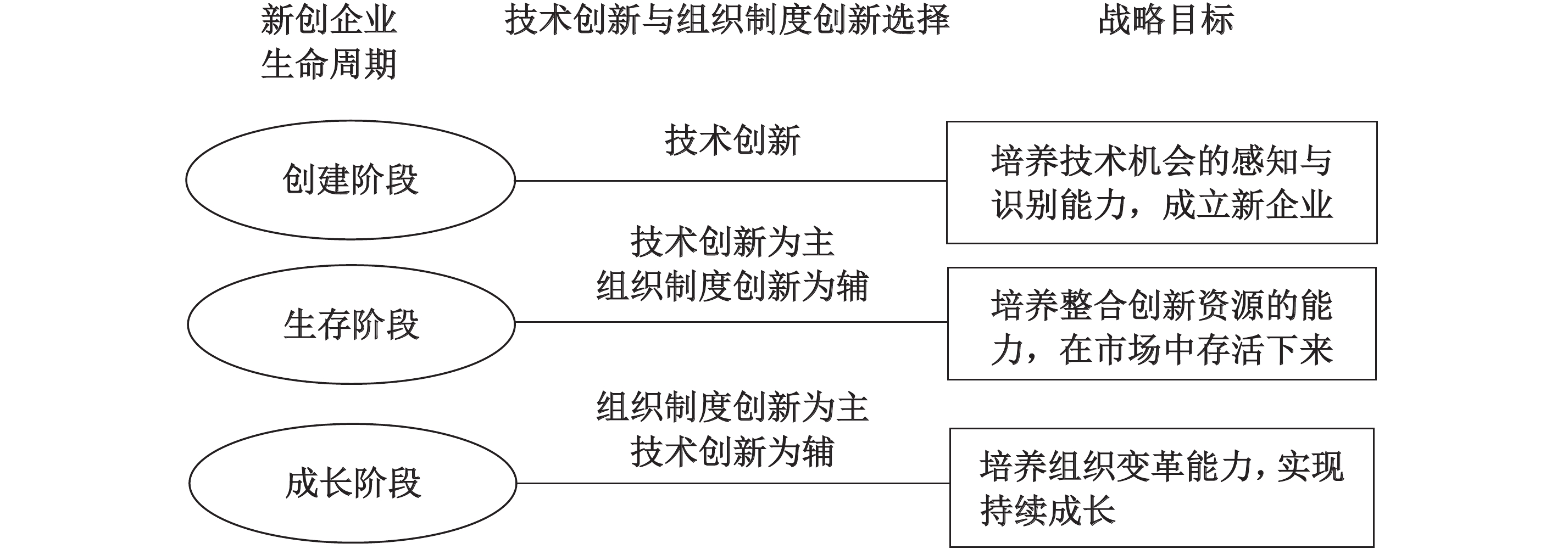 在技术逻辑导向下,新创企业各发展阶段技术与组织制度创新选择及目标如图1所示。
